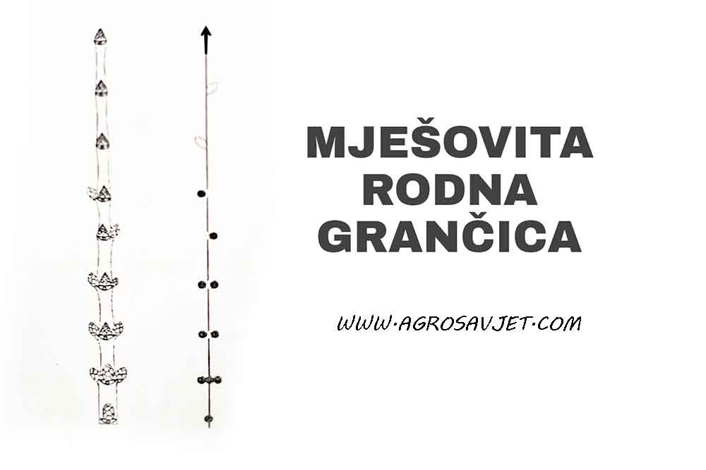 Ona na nodusima ima grupne kolateralne pupoljke. U grupi se nalaze obično 2 ili 3 pupoljka. Najčešće su dva cvjetna i jedan vegetativni ili jedan cvjetni i jedan vegetativni ili dva vegetativna i jedan cvjetni. Dužina ove rodne grančice je najčešće 25 cm, a kod breskve i veća. Na nekim nodusima se nalaze i pojedinačni pupoljci. U mješovite rodne grančice se ubrajaju svi prirasti koji postrano bar na jednom nodusu imaju kolateralne pupoljke. Ovaj tip rodne grančice najviše je zastupljen kod breskve.